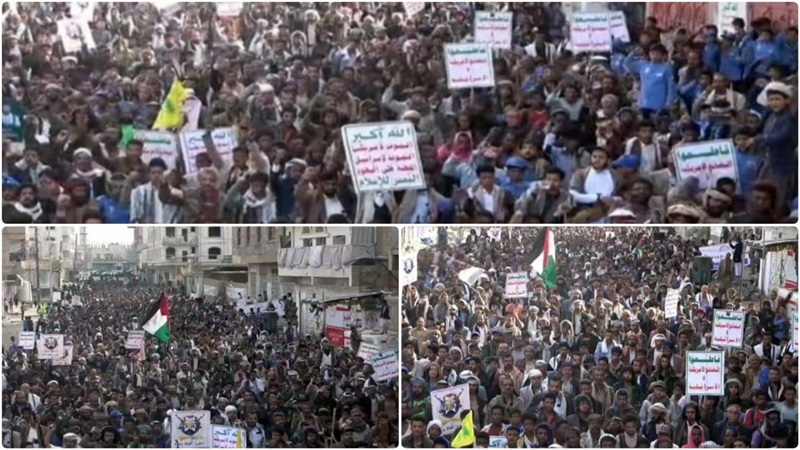 213 مسيرةً في الحديدة تجدّد دعمَها لغزة وتباركُ العمليات اليمنية في عمق الكيان