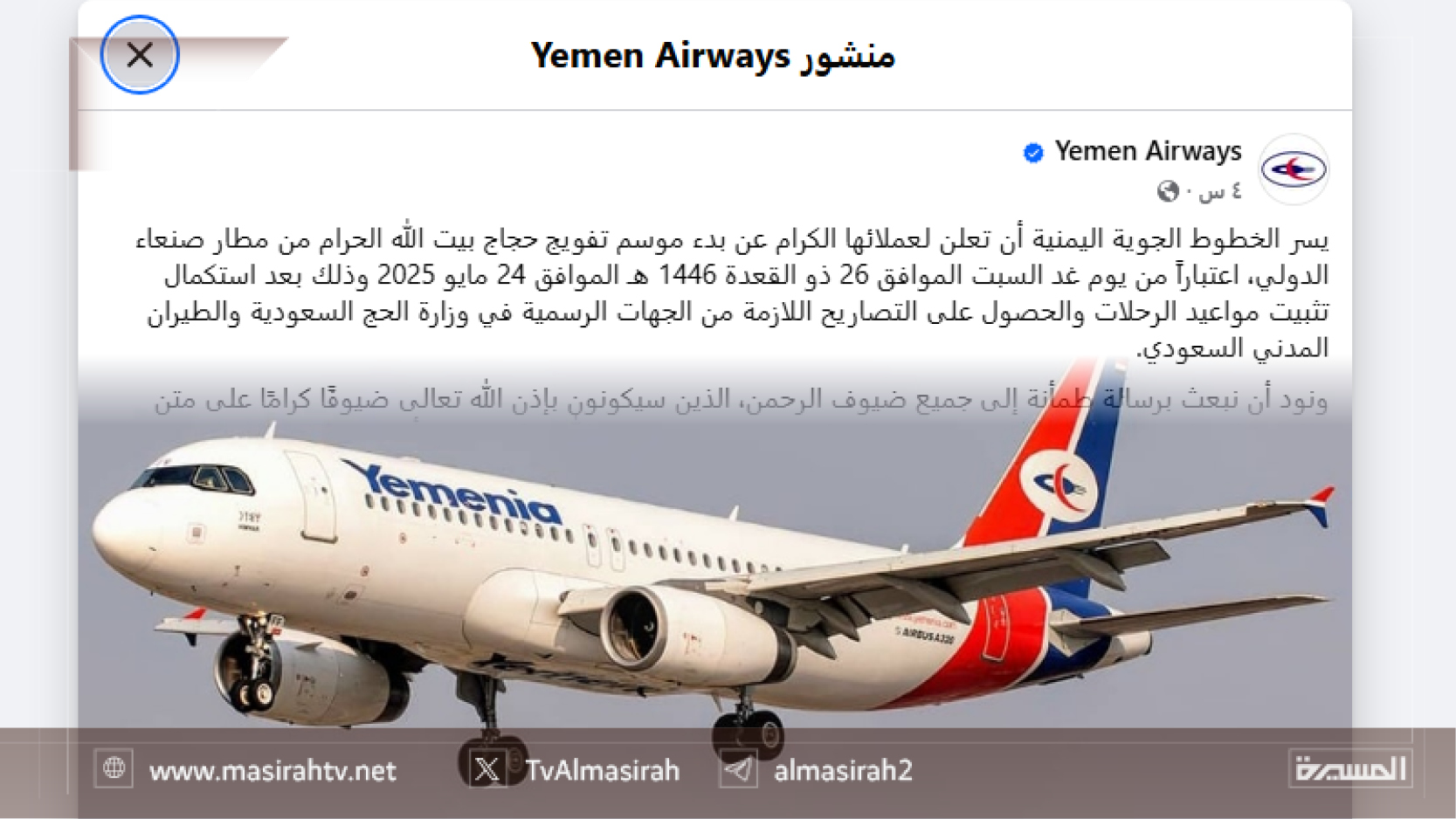 مطار صنعاء يبدأ غدًا تفويجَ الدفعة الأولى من الحجاج اليمنيين