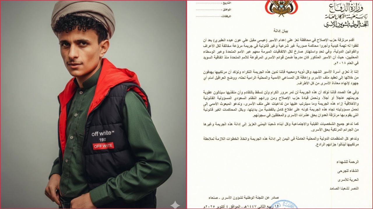 لجنة شؤون الأسرى تدين إعدام الأسير العفيري وتحمّل "الإصلاح" والنظام السعودي المسؤولية