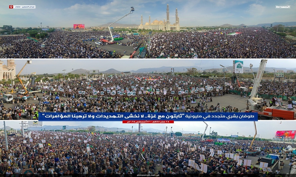 حشد مليوني كبير في صنعاء يدعو أبناء الأمة للتحرك في مواجهة الخطر الصهيوني