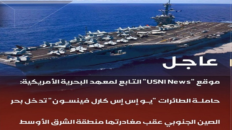 بعد فشلها في اليمن حاملة الطائرات الأمريكية "كارل فينسون" تدخل بحر الصين الجنوبي