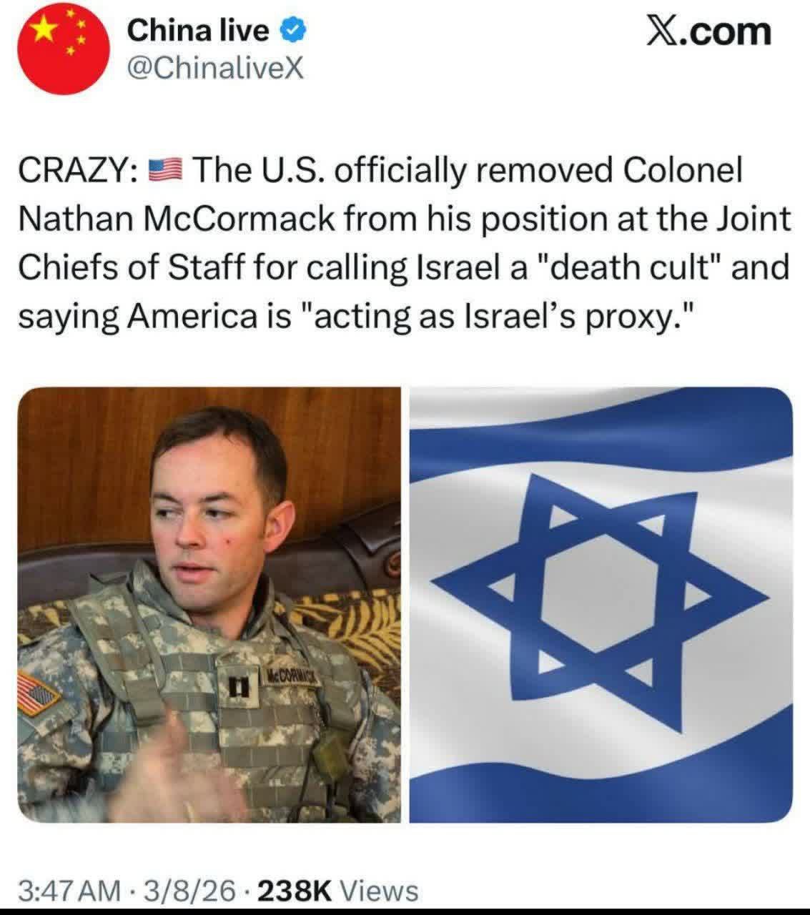 إقالة ضابط أمريكي وصف الكيان الصهيوني بـ"طائفة موت"