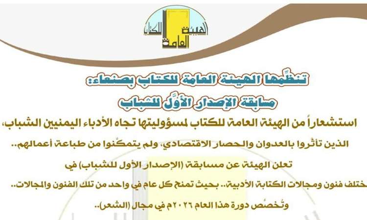 الهيئة العامة للكتاب بصنعاء تطلق مسابقة لدعم الأدباء الذين تأثروا بالعدوان والحصار