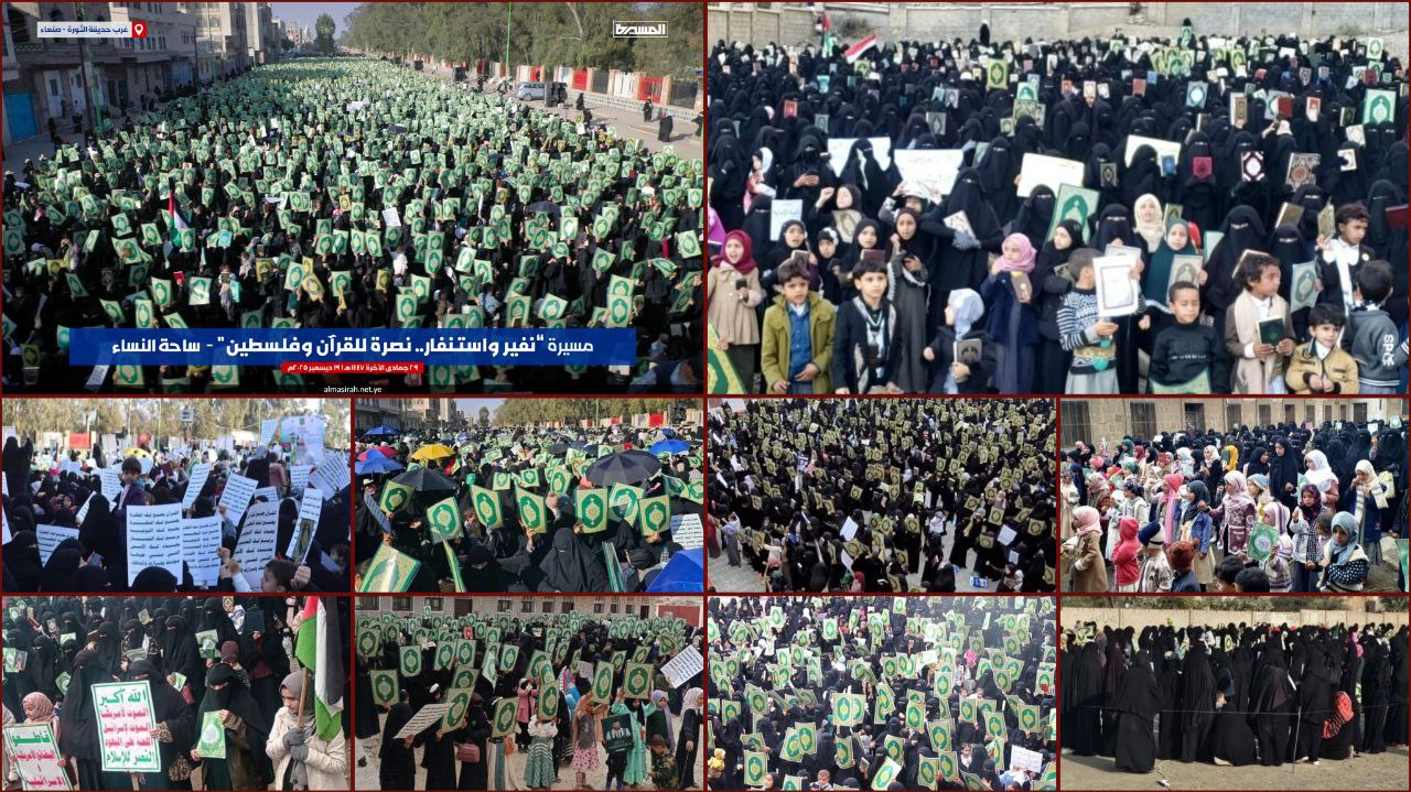 حرائر اليمن في أكثر من 50 ساحة.. نفير إيماني شامل نصرةً للقرآن وفلسطين وتأكيداً على وحدة الموقف