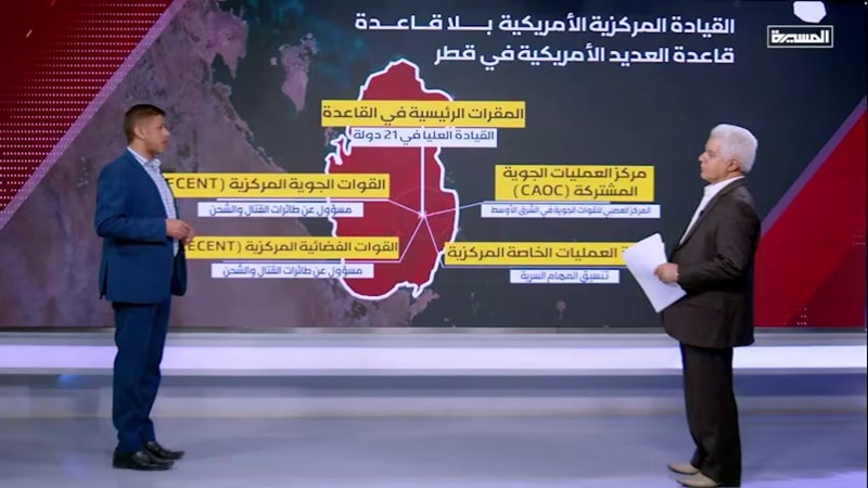 المسيرة نت| صنعاء: قال الخبير العسكري العميد مجيب شمسان إن قاعدة العديد الجوية تُعد أحد أبرز مراكز القيادة والتحكم العسكرية الأمريكية في المنطقة، مشيراً إلى أنها تحتضن مركز العمليات الجوية المشتركة الذي يدير مختلف التحركات الجوية والعمليات العسكرية.-