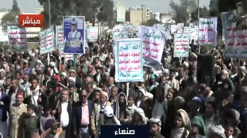 صنعاء تُحيي ذكرى 11 فبراير بمسيرة حاشدة أمام السفارة الأمريكية تأكيداً لرفض الوصاية