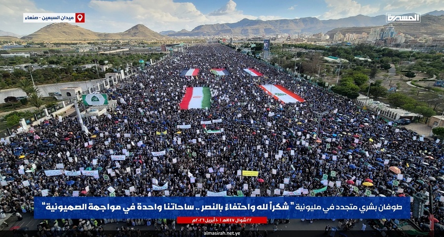 حشد مليوني في صنعاء يبارك انتصار إيران والمحور ويؤكد مواصلة نصرة فلسطين ولبنان حتى زوال الكيان