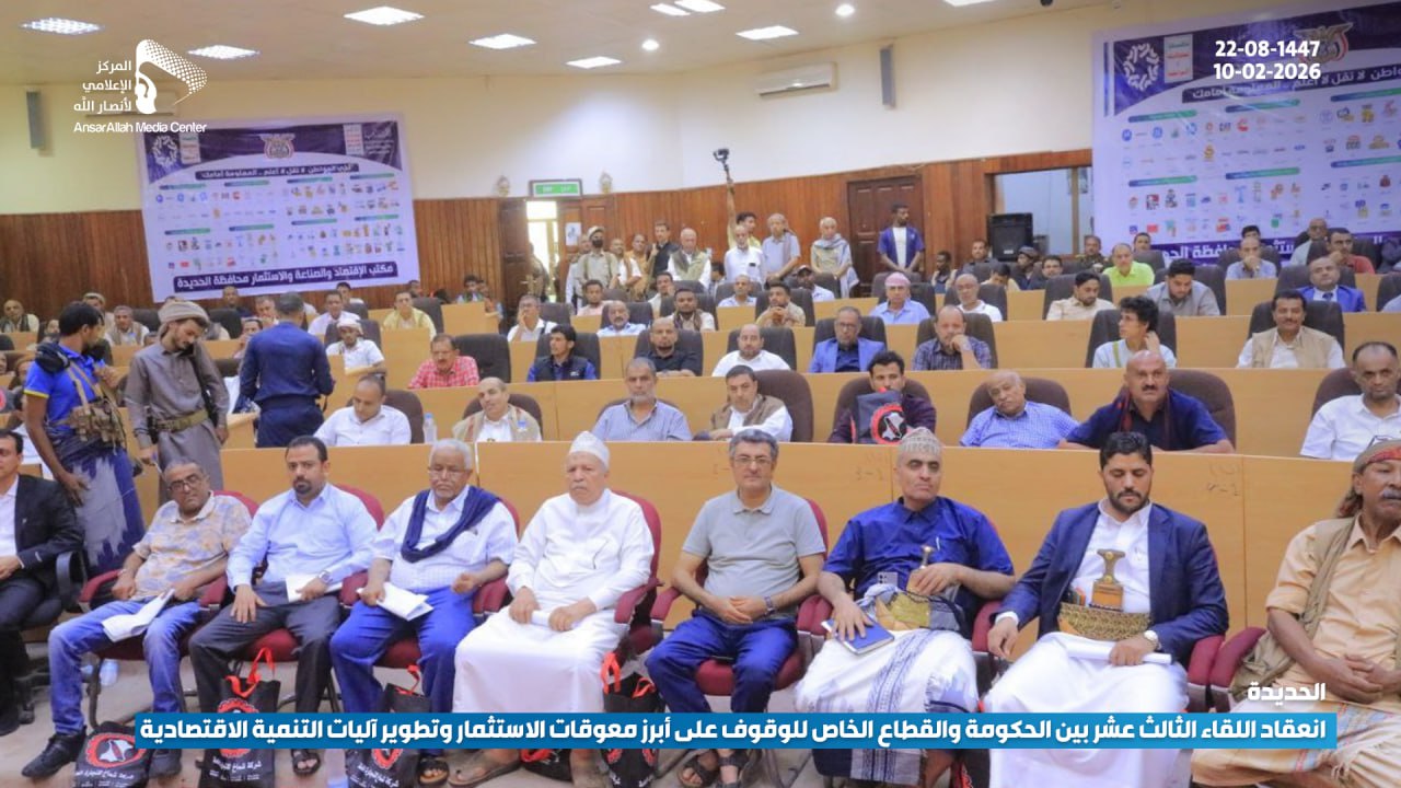 عُقد اليوم في محافظة الحديدة اللقاء الـ13 بين الحكومة والقطاع الخاص، لمناقشة أبرز معوقات الاستثمار وسبل تطوير آليات التنمية الاقتصادية، وذلك في إطار توجهات رسمية تهدف إلى تعزيز الشراكة مع رجال الأعمال وتفعيل دورهم في دعم الاقتصاد الوطني.