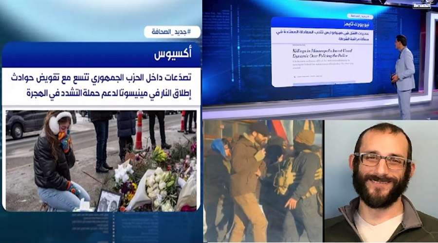 المسيرة نت| خاص: تناولت فقرة "جديد الصحافة" من برنامج "صدى الخبر" على قناة "المسيرة"، اليوم الثلاثاء، جملةً من التقارير والتحليلات الدولية التي سلطت الضوء على تطورات المشهد الأمريكي عقب حوادث القتل في ولاية "مينيسوتا".-