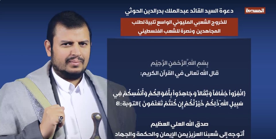 المسيرة نت| متابعات: دعت لجنة نصرة الأقصى إلى الاحتشاد المليوني عصر يوم غدٍ الجمعة، في ميدان السبعين بالعاصمة صنعاء، وفي بقية الساحات بالمحافظات في مسيرات "تلبيةً ونصرةً للشعب الفلسطيني.. ثابتون وجاهزون للجولة القادمة"، استجابةً لله تعالى، وجهادًا في سبيله، وتلبيةً لدعوة السيد القائد.