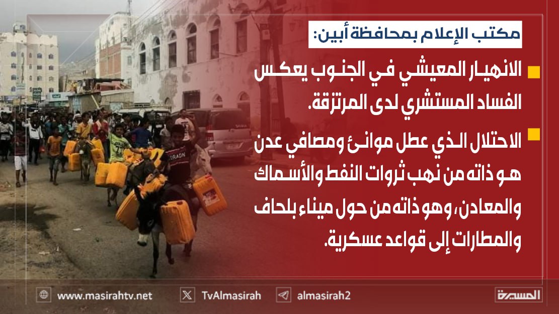 لمكتب الإعلام في محافظة أبين فإن الانهيار المعيشي والاقتصادي الذي يعاني منه