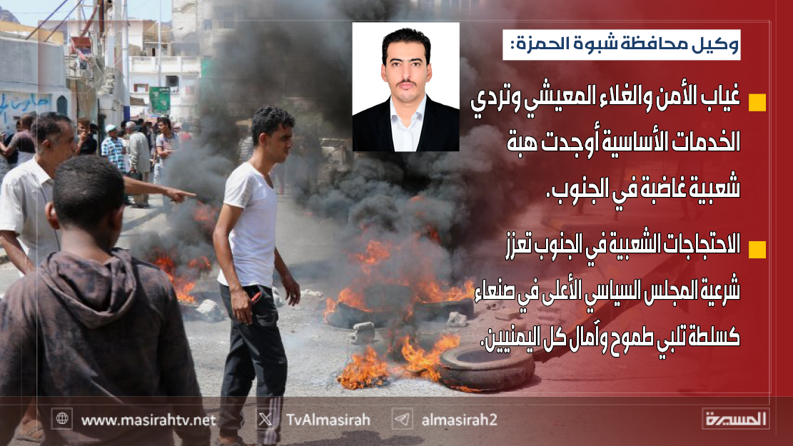 الحمزة أن تصاعد الاحتجاجات سيُضعف قبضة حكومة المرتزِقة على المناطق المحتلة،
