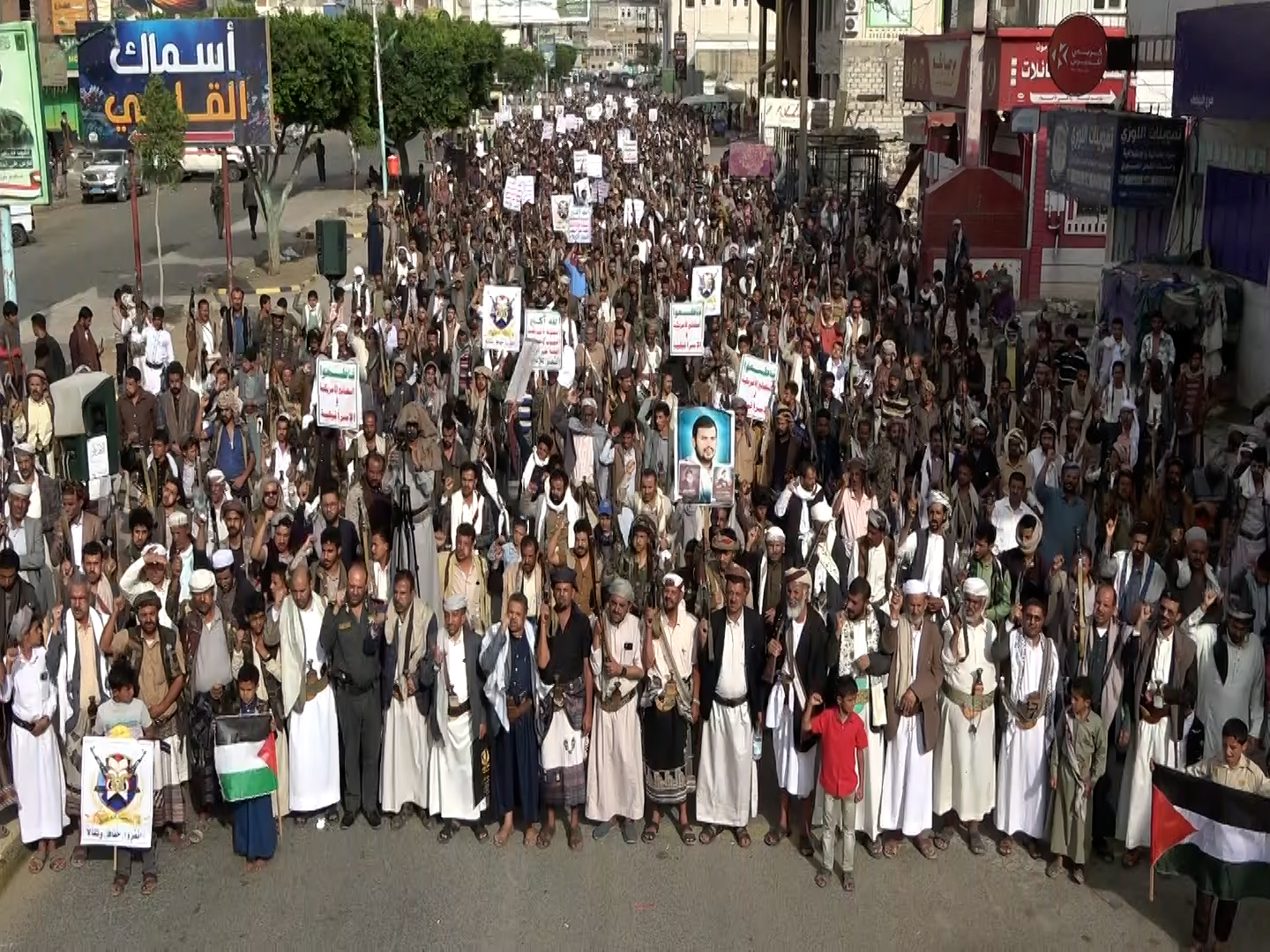 البيضاء.. مسيرات حاشدة تأكيدًا على الثبات مع غزة وإيران ضد الجرائم الصهيوأمريكية