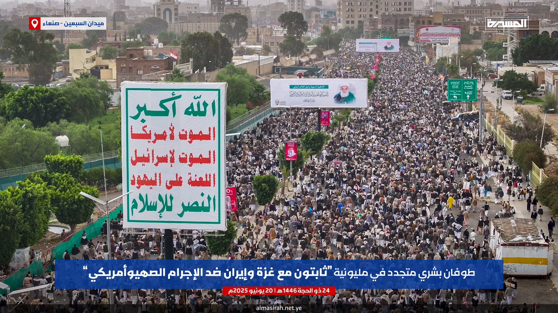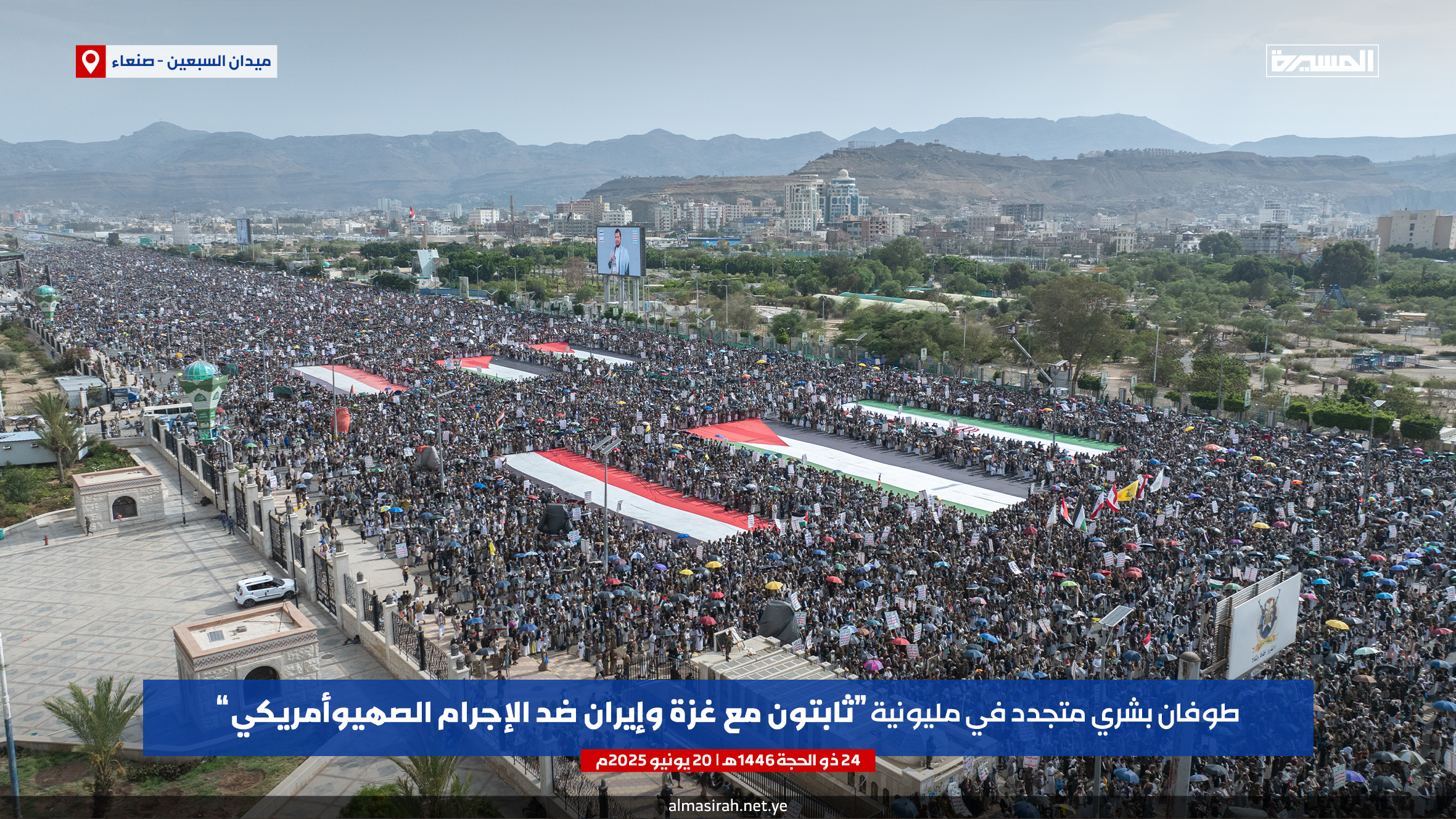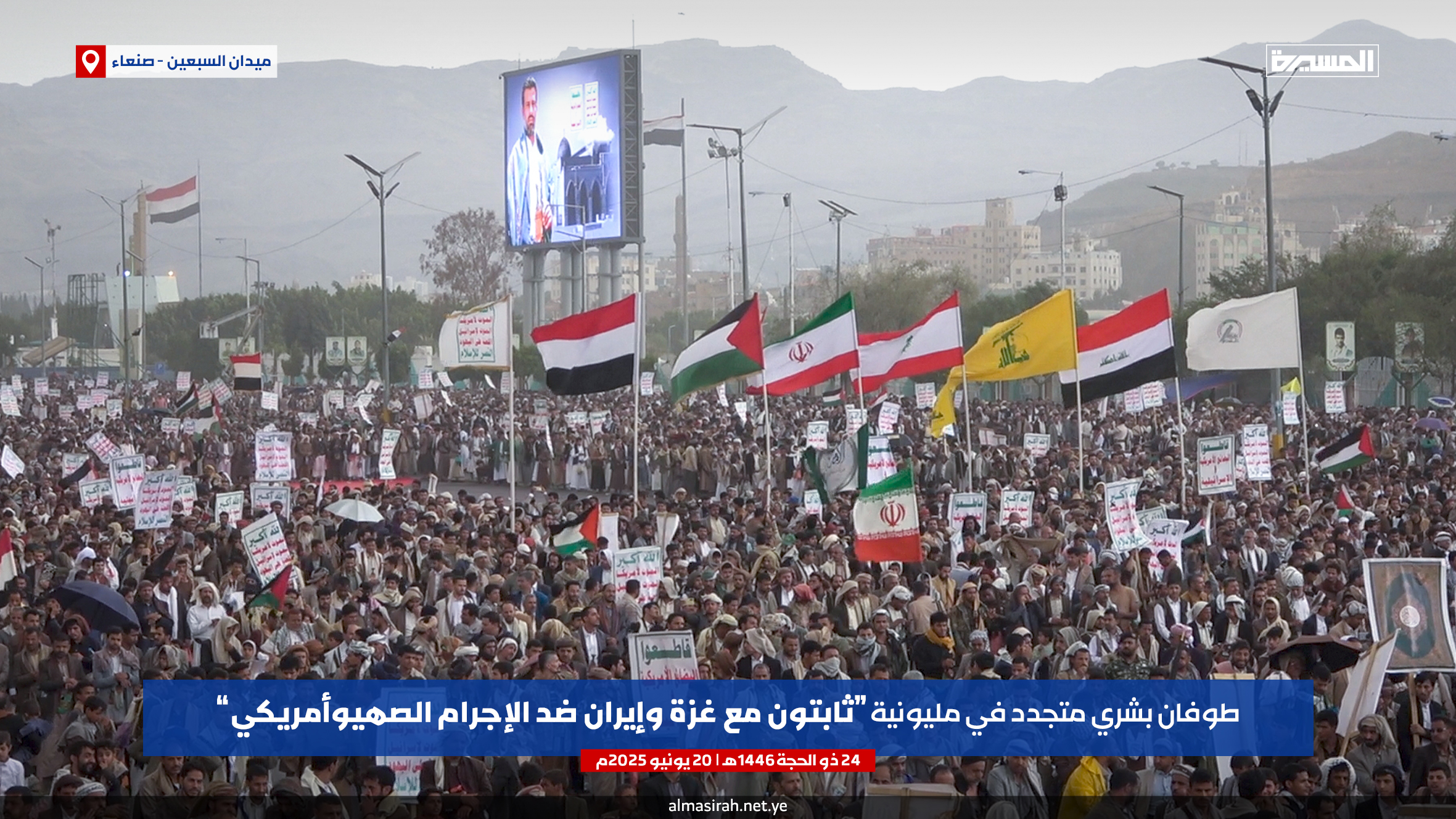 طوفان بشري مليوني بصنعاء يؤكّـد مواصلةَ إسناد غزة وإيران ضد الطغيان الصهيوأمريكي (صور)