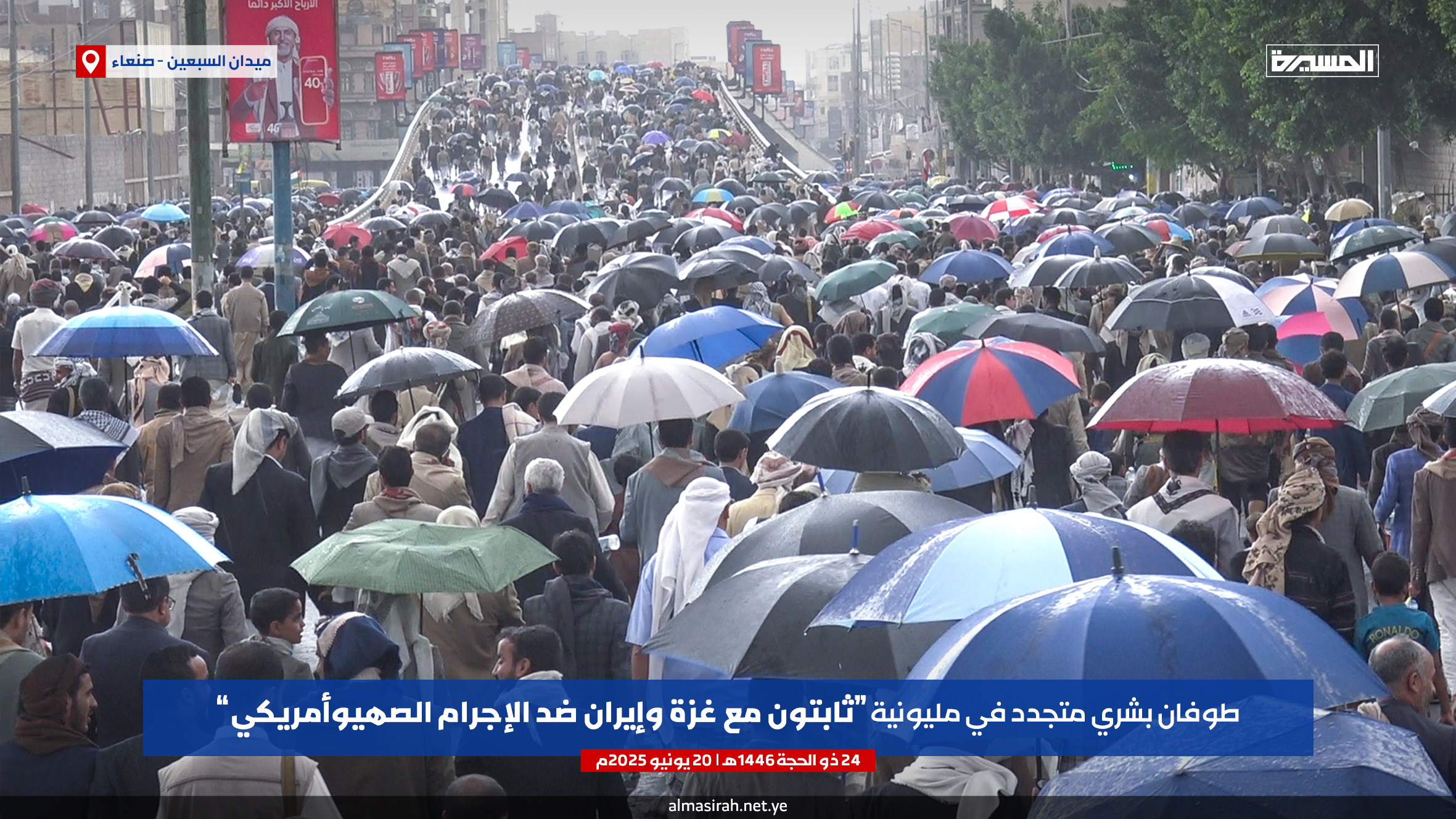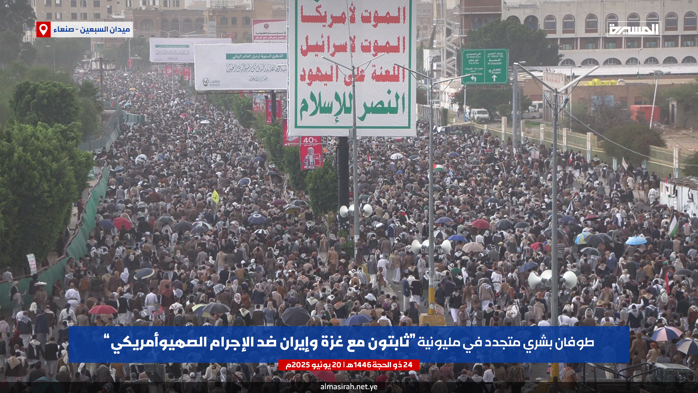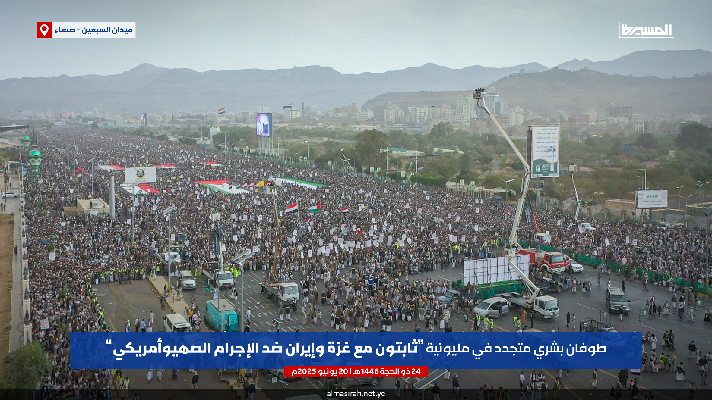 طوفان بشري مليوني بصنعاء يؤكّـد مواصلةَ إسناد غزة وإيران ضد الطغيان الصهيوأمريكي (صور)
