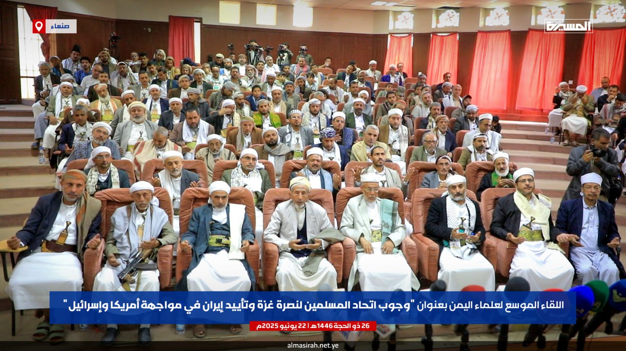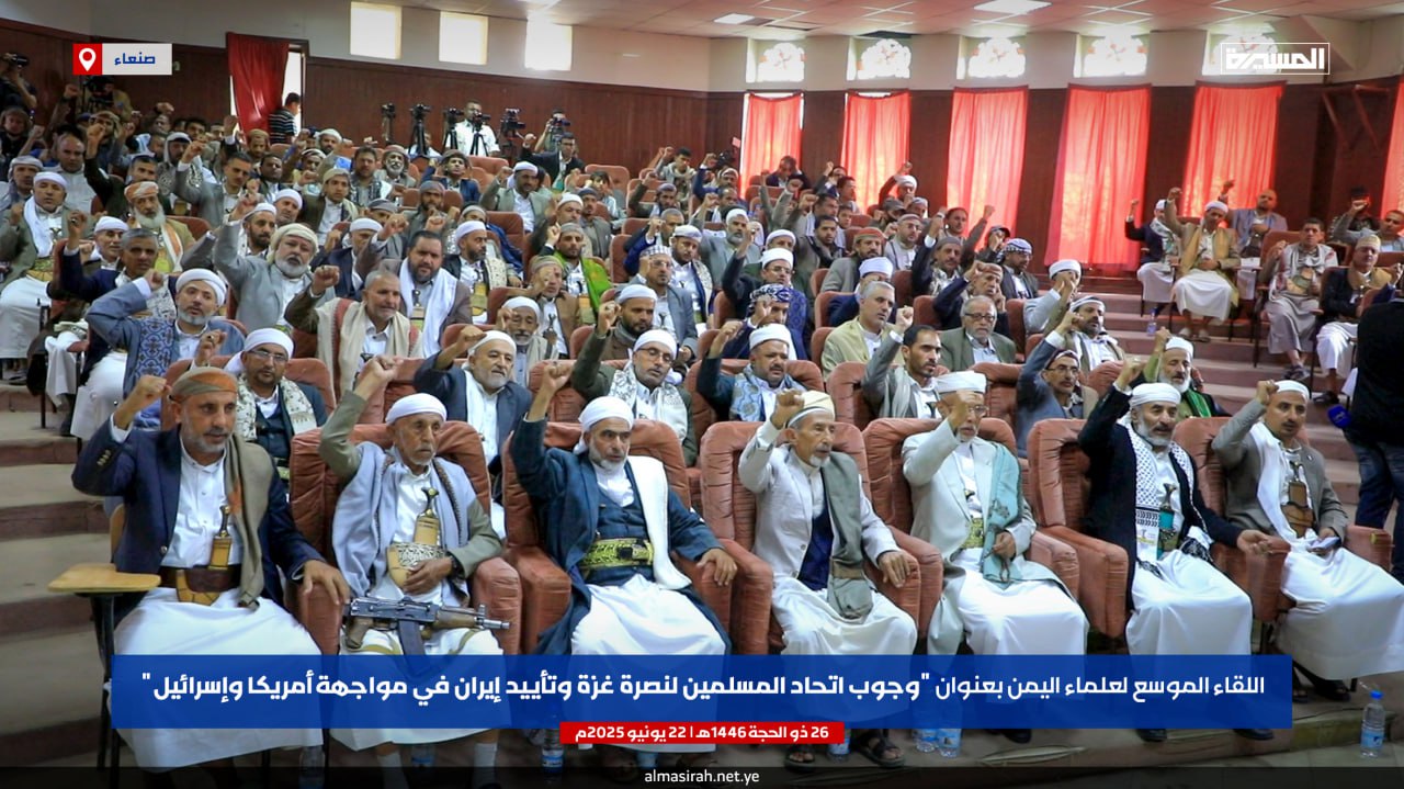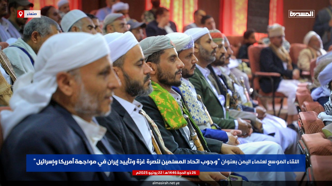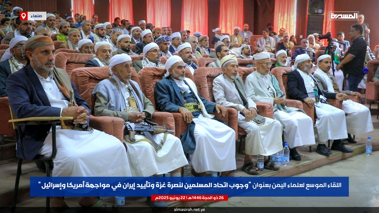 جاء ذلك في اللقاء الموسع لعلماء اليمن اليوم الأحد، تحت بعنوان "وجوب اتحاد المسلمين لنصرة غزة وتأييد إيران في مواجهة أمريكا والكيان الصهيوني".