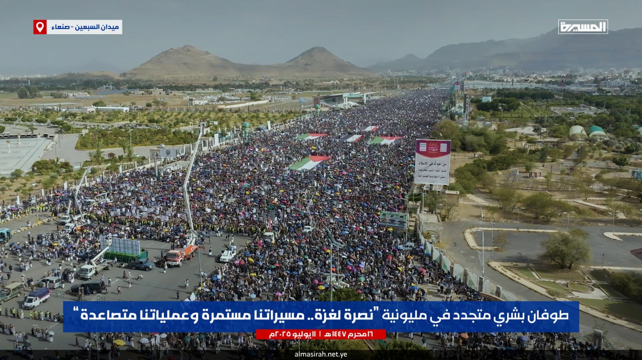 مليونية جماهيرية ضخمة في قلب العاصمة صنعاء عبّر عنفوانها المتعاظم عن استثنائية موقف اليمن المتكامل والمشرّف إلى جانب غزة في وجه قوى الشر والإجرام..— قناة المسيرة (@TvAlmasirah) July 11, 2025