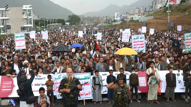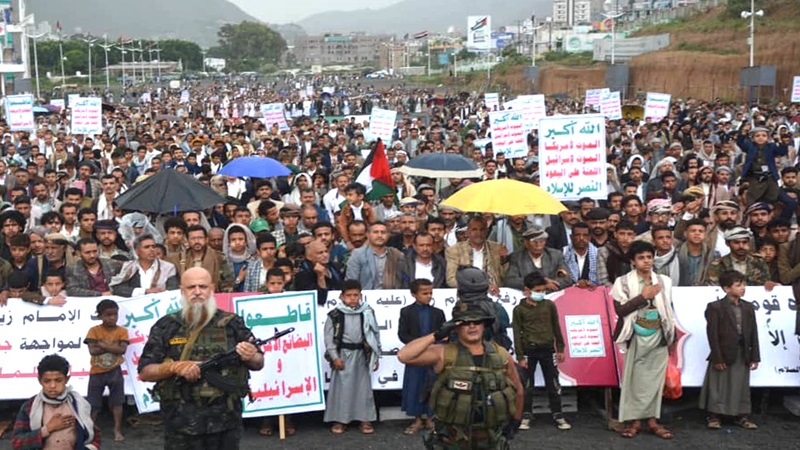 وأدان المشاركون في المسيرة بساحةِ الرسول الأعظم بمدينة إب وسطَ الأمطار الغزيرة، ومديريات المربع الشمالي "يريم، السدة، النادرة، والرضمة"، والتي شهدت 35 مسيرة حاشدة، مجازر الاحتلال الإسرائيلي المُستمرّة في قطاع غزة منذ 21 شهرًا.