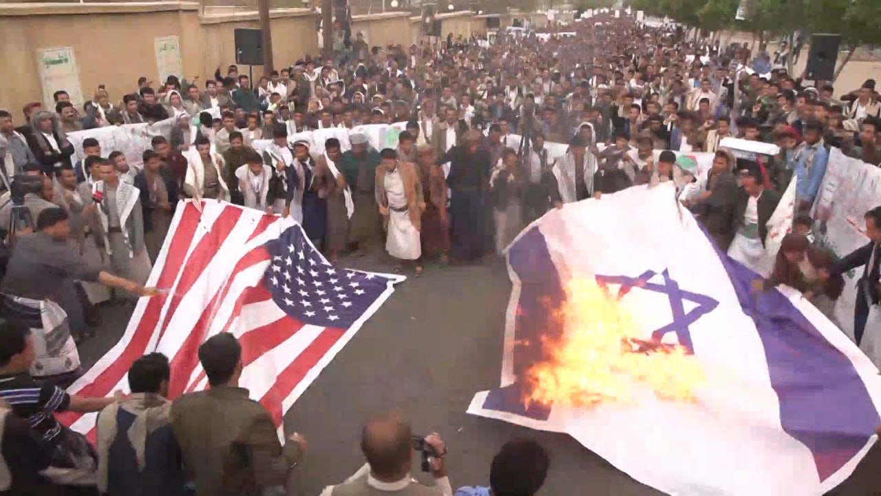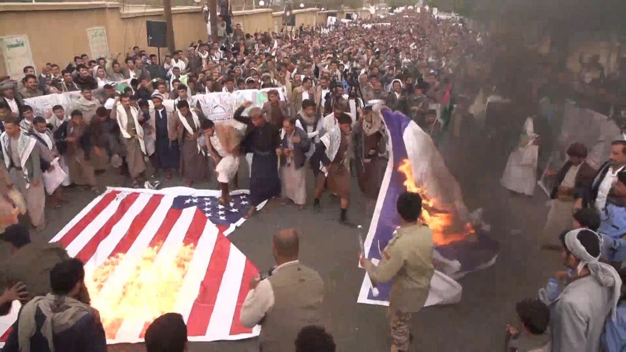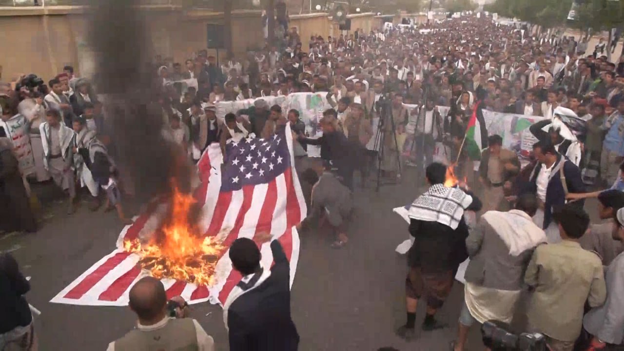 وخلال الفعالية، أقدم المحتجون على إحراق العلمين الأمريكي والصهيوني، مصحوبين بصرخات وهتافات الحرية: "الله أكبر، الموت لأمريكا، الموت لإسرائيل، اللعنة على اليهود، النصر للإسلام"، في حين ألقى أحد الطلاب مشاركته باللغة الإنجليزية، مؤكدين تضامنهم المطلق.