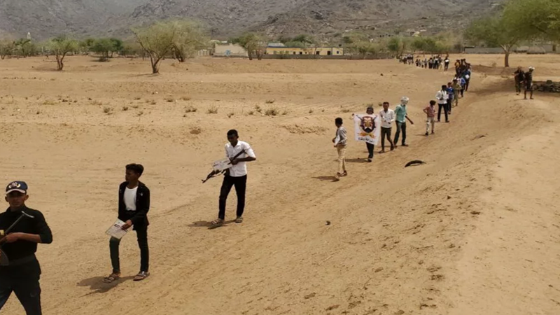 خاص| المسيرة نت: نظّم خريجو المرحلة السادسة من دورات التعبئة العامة "طوفان الأقصى"، بمدينة الخوبة في مديرية اللحية بمحافظة الحديدة، اليوم، مسيراً شعبياً راجلاً، جسّدوا من خلاله روح الجهوزية العالية للانخراط في ميادين الجهاد والمواجهة.