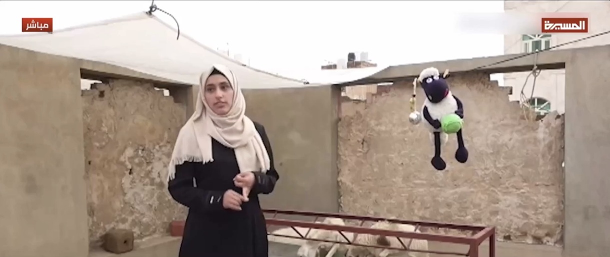 المواشي على سطح منزلها في صنعاء، حيث لا يتوفر الرعي. إلا أنها تعلمت كيفية