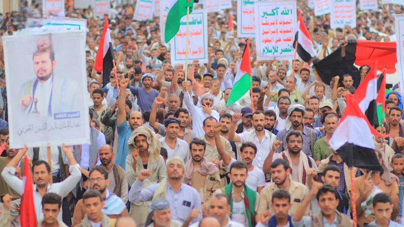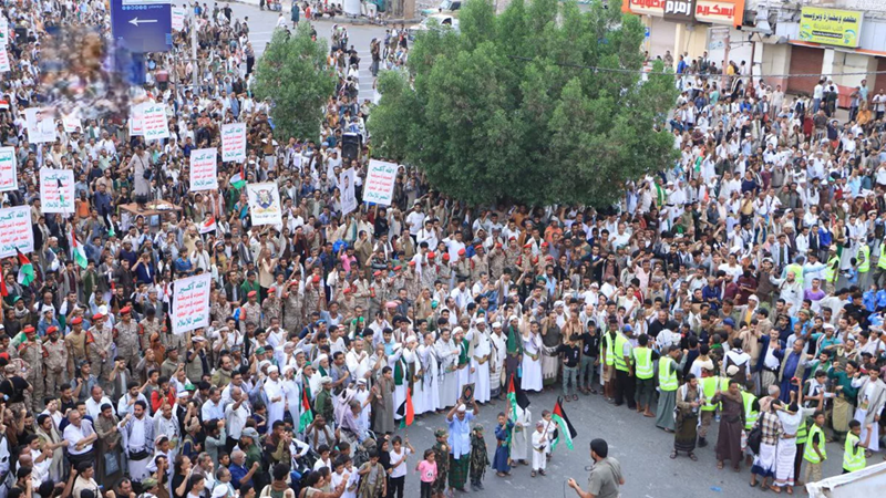 ورفع المشاركون في المسيرات، العَلَمَين اليمني والفلسطيني ولافتات مؤكّـدة على استمرار الدعم والإسناد اليمني للمقاومة حتى كسر الحصار وتحقيق النصر.