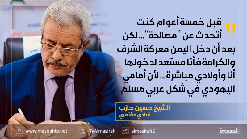 الشيخ حسين حازب في حوار لـ "المسيرة نت": المؤتمر ليس حزبًا عائليًّا والسيد القائد ملهمٌ لأحرار العالم
