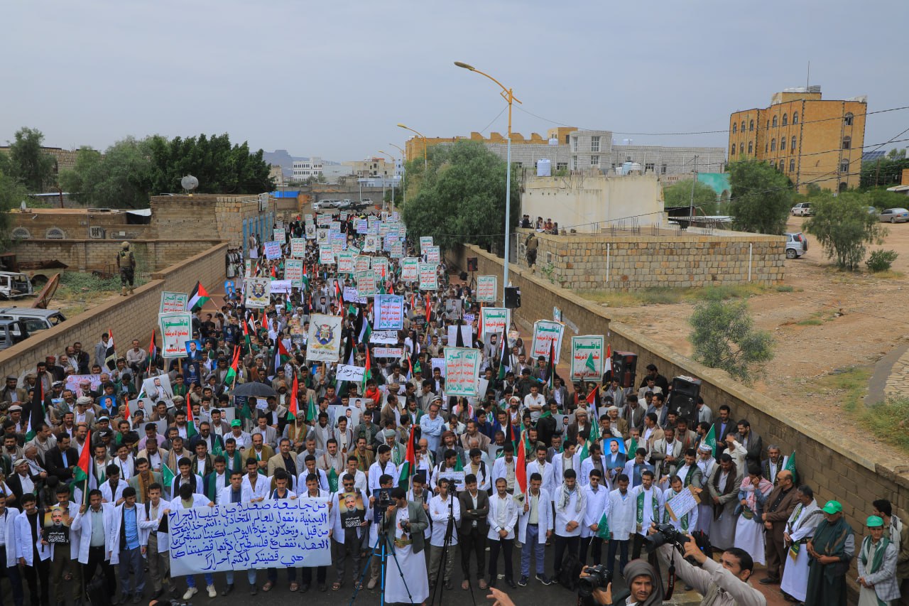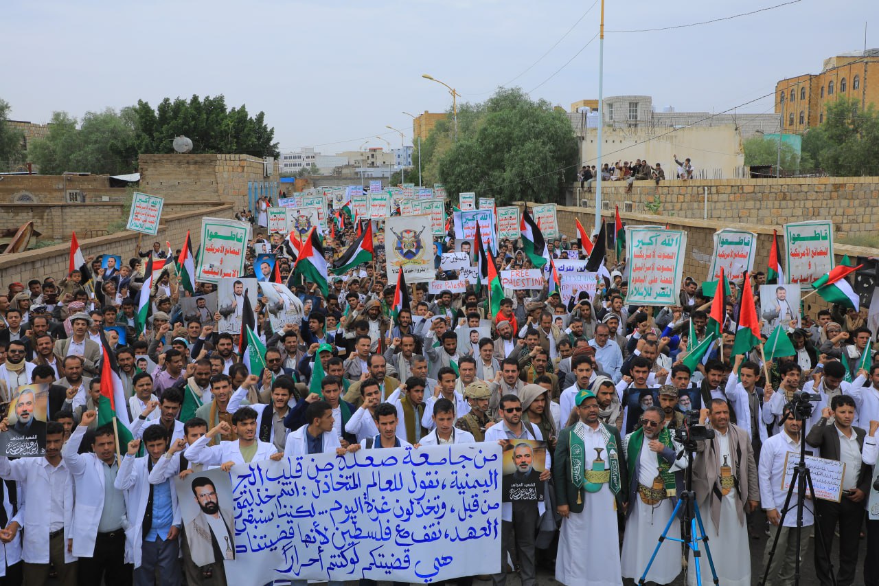 طلاب وأكاديميو جامعة صعدة في مسيرة حاشدة: الكلمة الصادقة سلاحٌ بوجه العدوان وليست رصاصةً في صدر الأبرياء