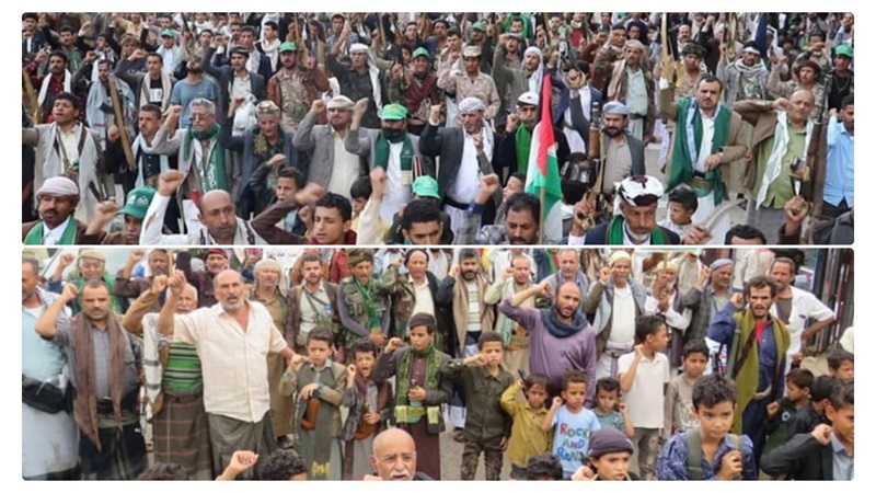 حاملين أسلحتَهم ورافعين قبضاتهم، وترافق خناجرهم اليمانية، حناجرهم الصدّاحة بهُتافات
