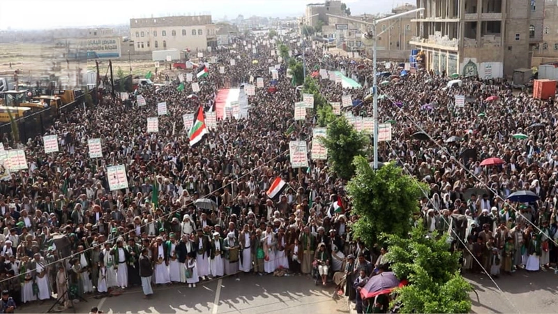 اليمانيين المناصرين لغزة أسبوعًا تلوَ الآخر، اكتظ الميدان بالحشود حتى فاضت كُلُّ