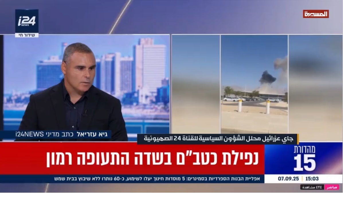 اليوم الأحد، أن الجيش الصهيوني لم يعلم بوجود المسيرة إلا بعد إصابتها للمطار،