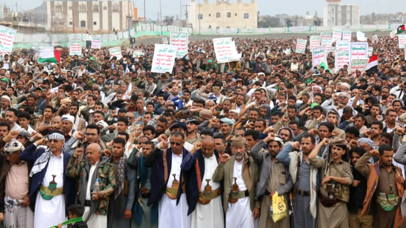 الحشود اليمانية تعود لساحات الإسناد بزخم كبير وتؤكد ضرورة "وَحدة الساحات" لوقف العربدة و"الاستباحة"