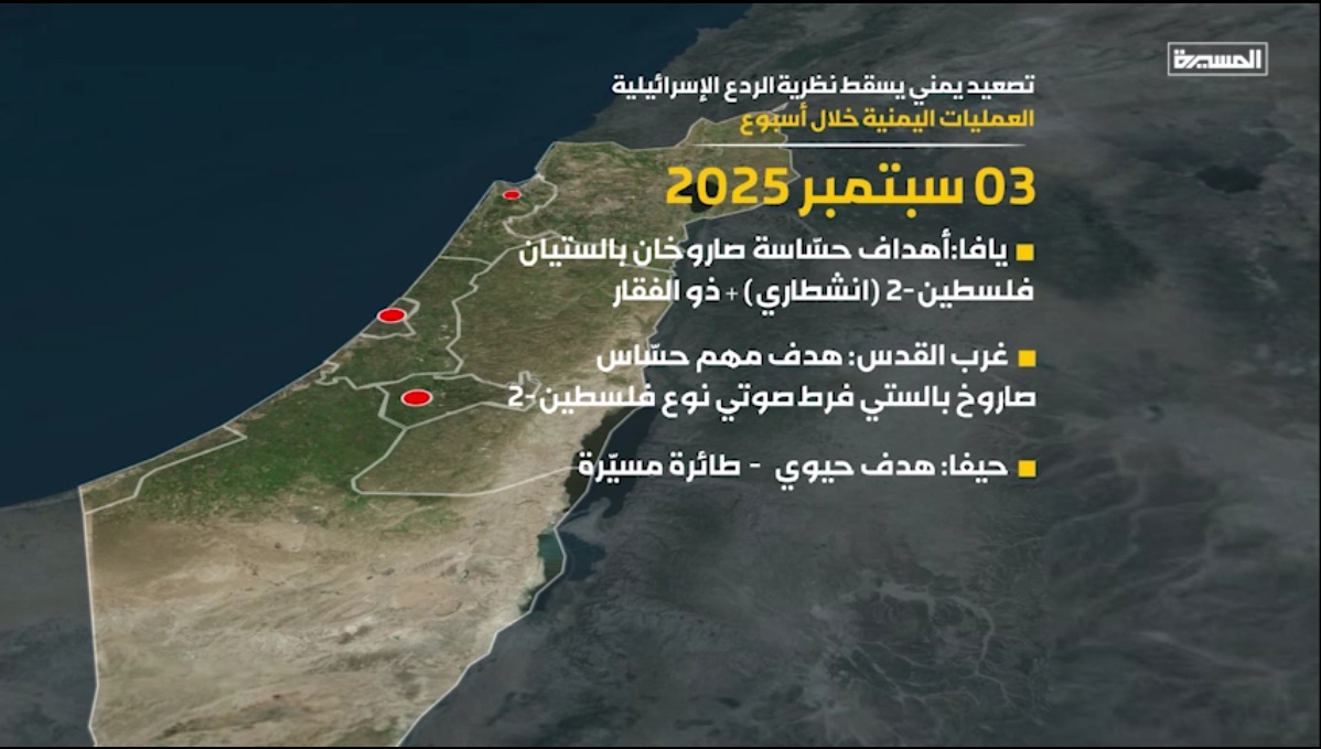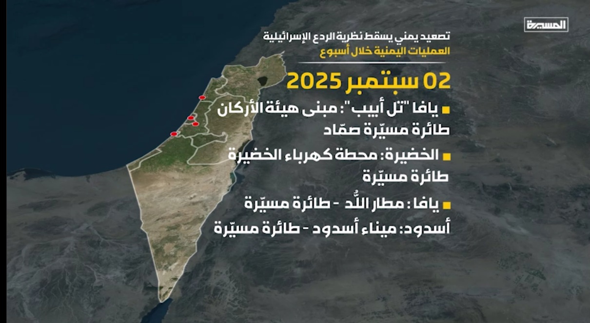 عمليات عسكرية يمنية متصاعدة خلال أسبوع .. خارطة العمليات في عمق الكيان الصهيوني
