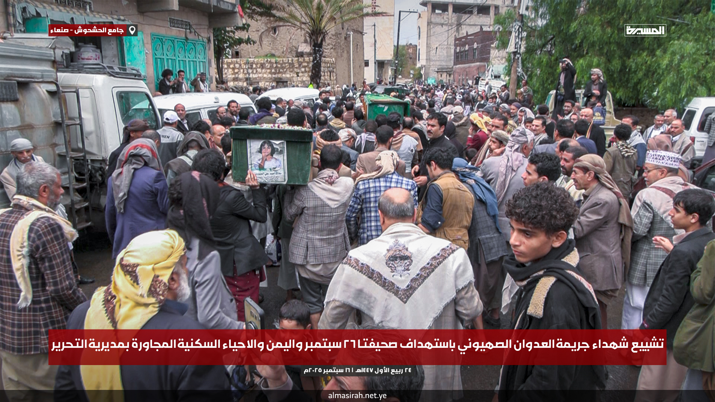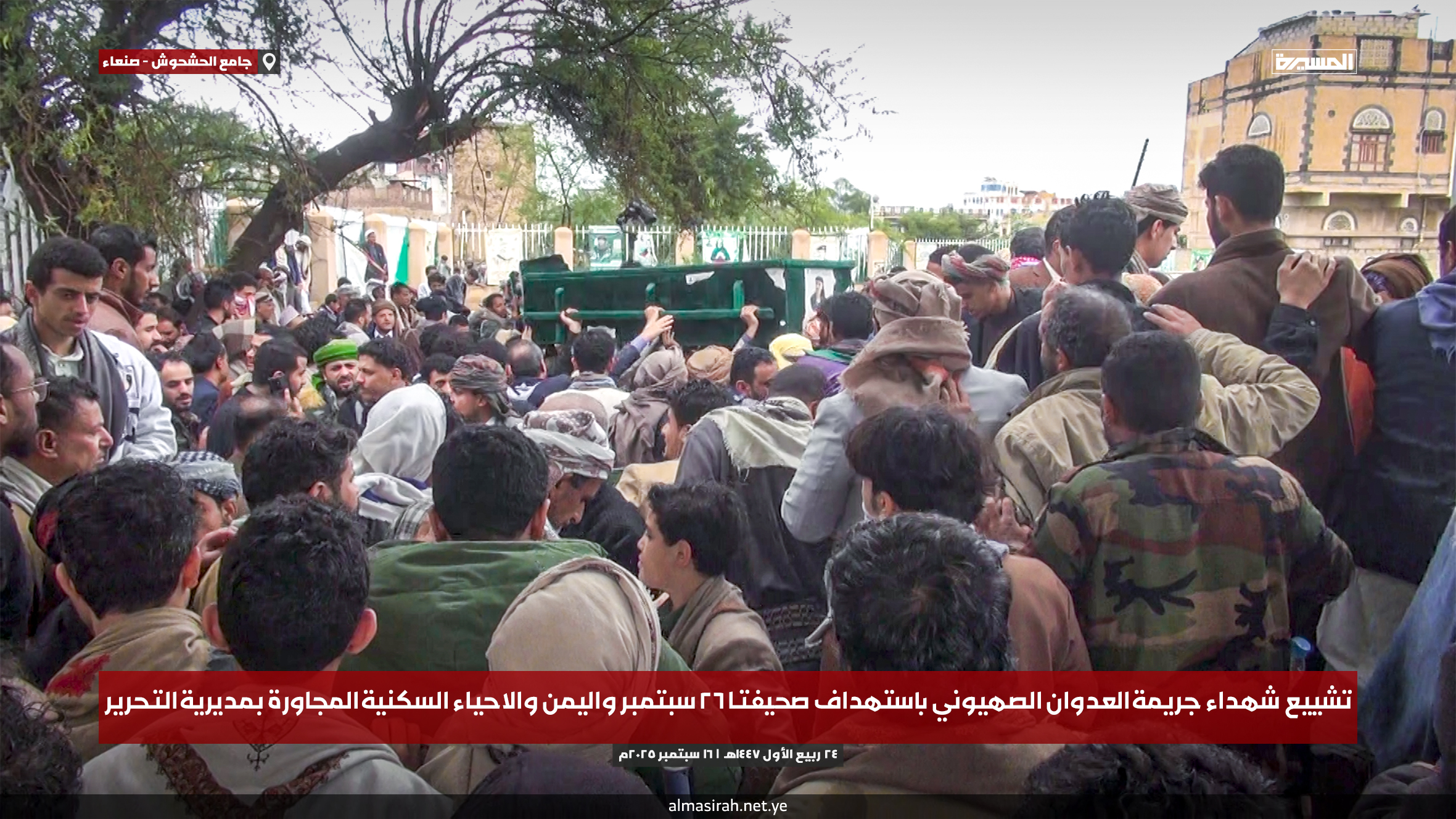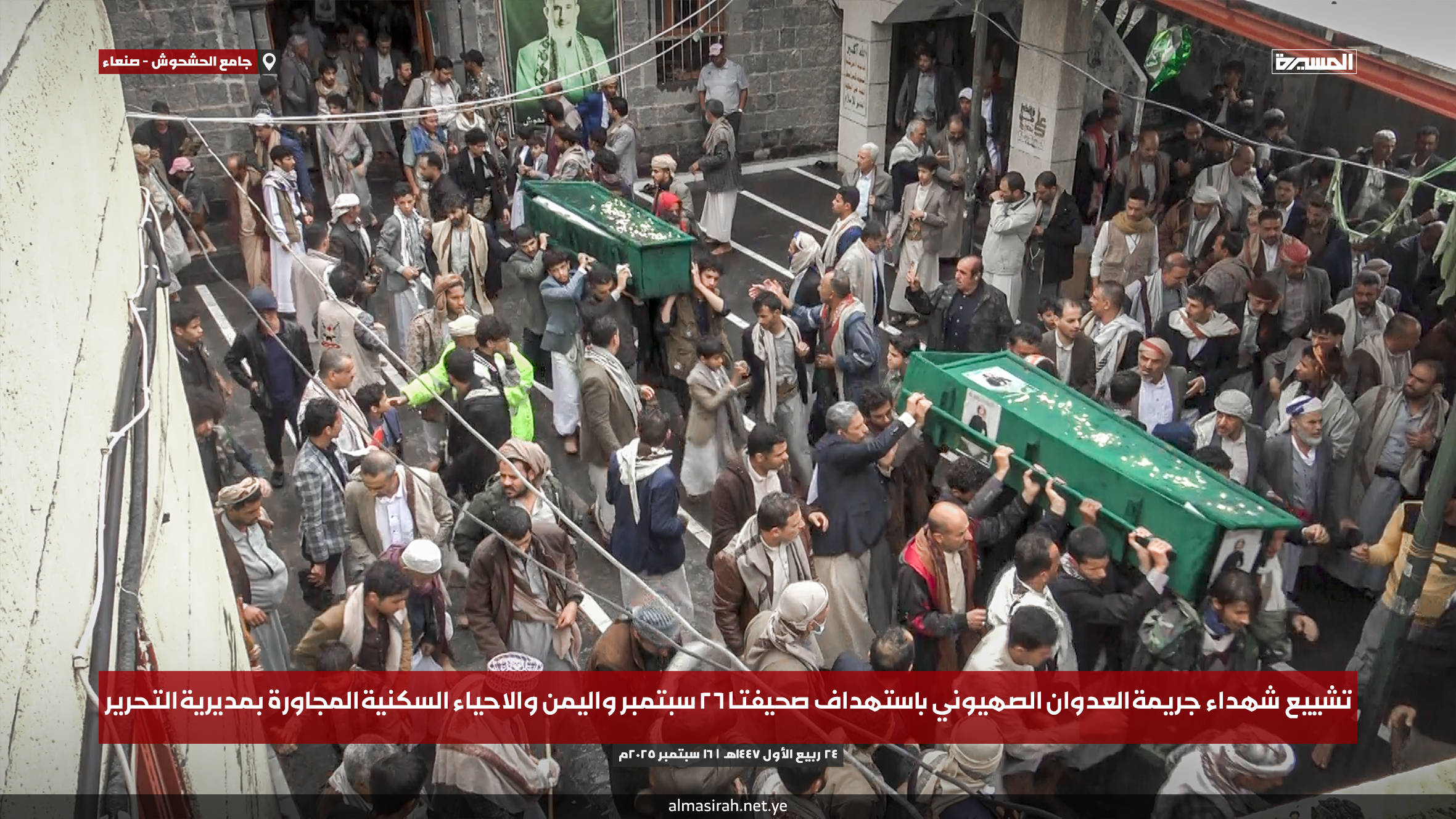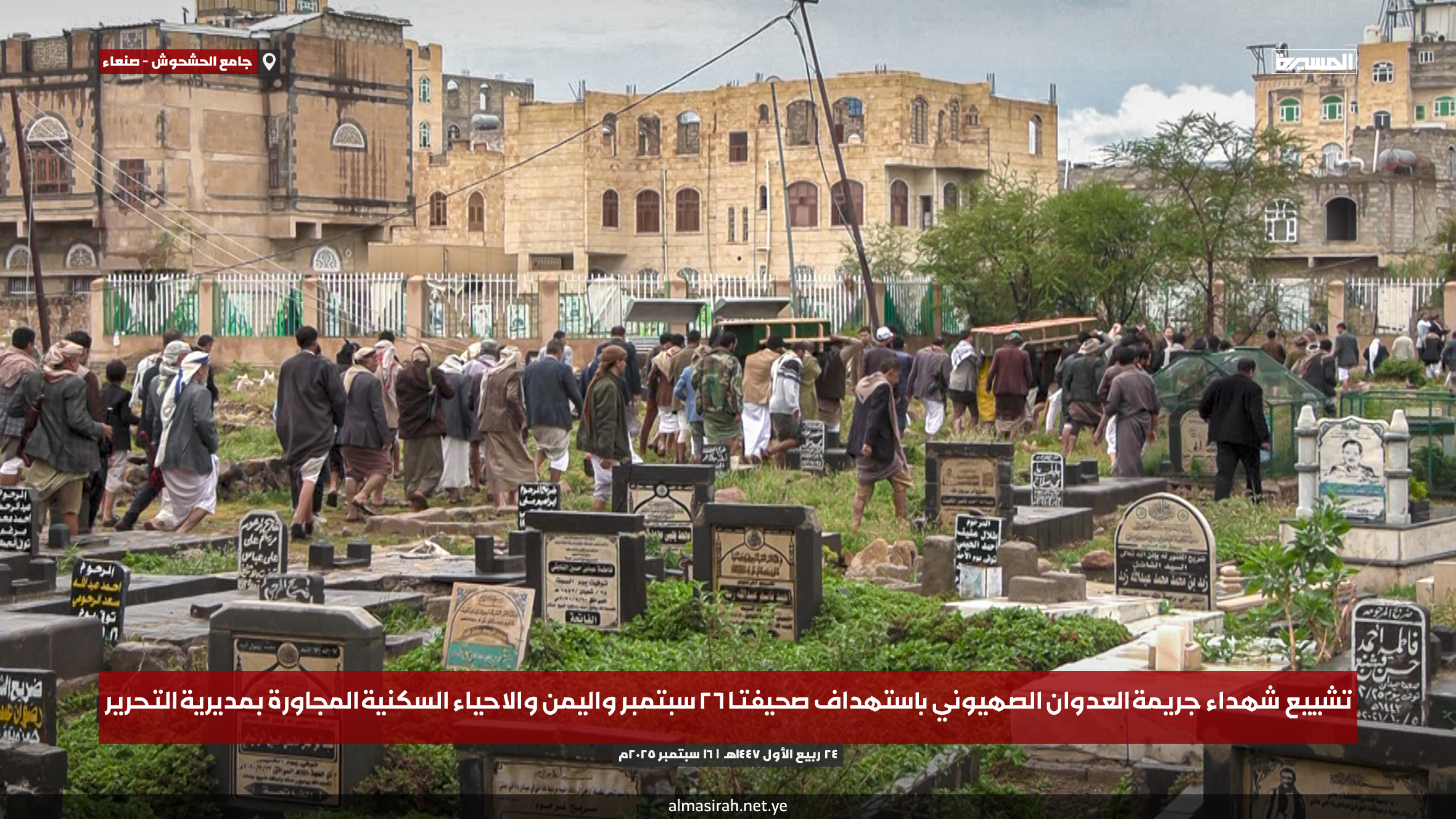 التشييع مزيجًا من الحزن العميق والصمود، حيث توافد الآلاف من أهالي صنعاء إلى