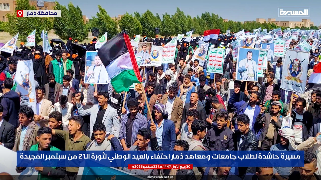 مسيرة حاشدة لجامعات ومعاهد ذمار احتفاء بثورة 21 سبتمبر