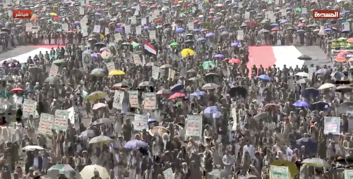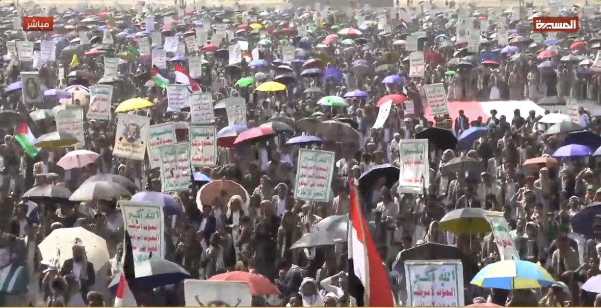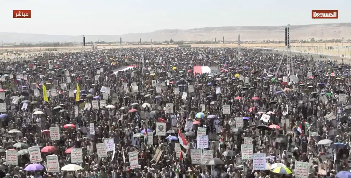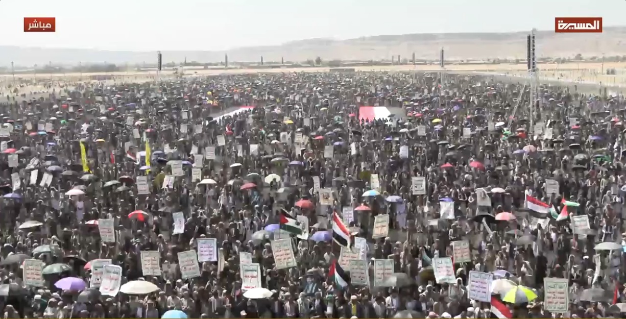 وفيما رفع المشاركون الأعلام اليمنية والفلسطينية، رددوا شعارات وهتافات تعبّر عن التضامن مع الشعب الفلسطيني في غزة، وتجديد العهد مع قضايا الأمة، وتؤكد على التمسّك بالقيم الوطنية والدينية والانسانية، وعلى استمرار الدعم الشعبي للقضية الفلسطينية، إلى جانب القيادة الثورية والسياسية والعسكرية.