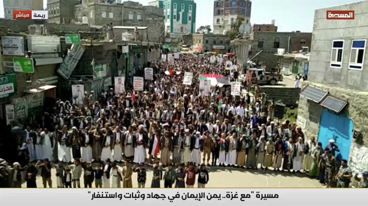 احتشد الآلاف في الساحة المركزية بمديرية الجبين محافظة ريمة، اليوم الجمعة، في مسيرة "مع غزة.. يمن الإيمان في جهاد وثبات واستنفار، تضامناً مع أهل غزة واستذكارًا للشهداء.
