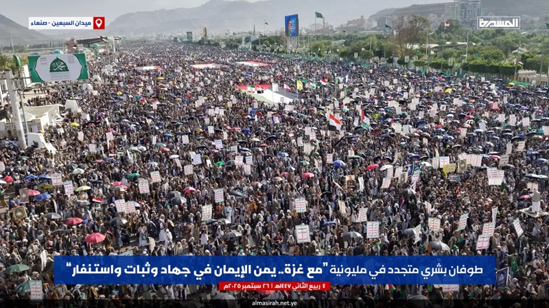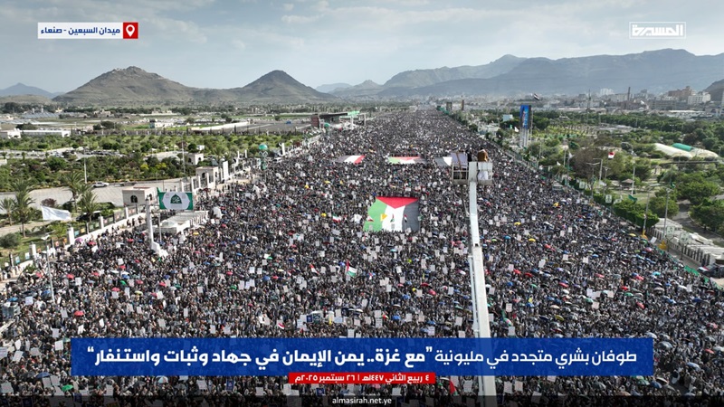 بيان مليونية " مع غزة.. يمن الإيمان في جهاد وثبات واستنفار " بـ #ميدان_السبعين في العاصمة #صنعاء | 04-04-1447هـ 26-09-2025م#ثابتون_مع_غزة #يمن_الواثقين_بالله pic.twitter.com/j6cQDiwxXf— قناة المسيرة (@TvAlmasirah) September 26, 2025
