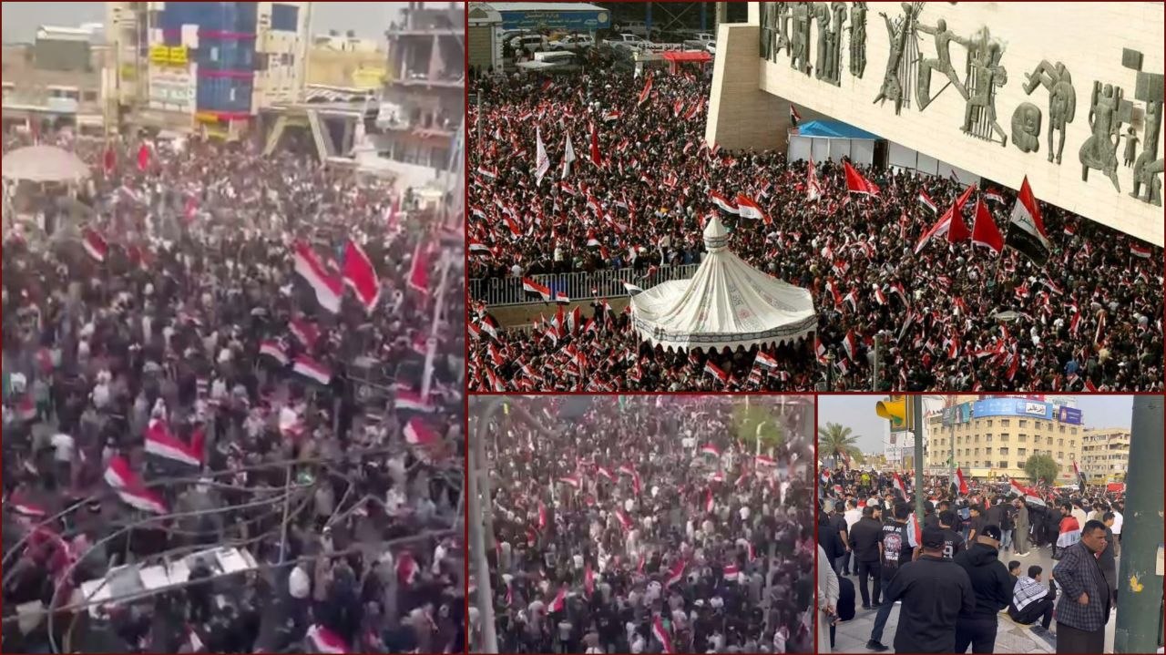 المسيرة نت | تقرير: جدد الشعب العراقي، اليوم السبت، خروجه الجماهيري المناصر للجمهورية الإسلامية في إيران، وقوى محور الجهاد والمقاومة، وذلك بمسيرات حاشدة في العاصمة بغداد ومناطق أخرى، معلنين الجهوزية الدائمة في مواجهة العدوان الأمريكي الصهيوني على دول المنطقة.-