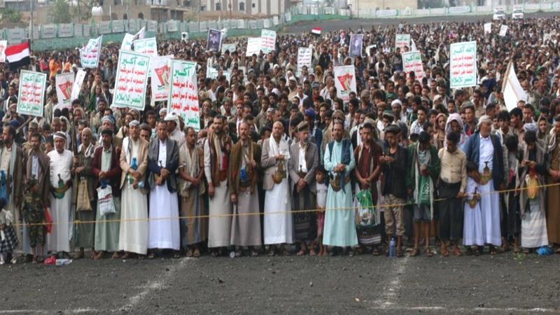 إلى أن الخروج الشعبي، يعبّر عن ثبات وإصرار الشعب اليمني على مبدأ الدفاع عن