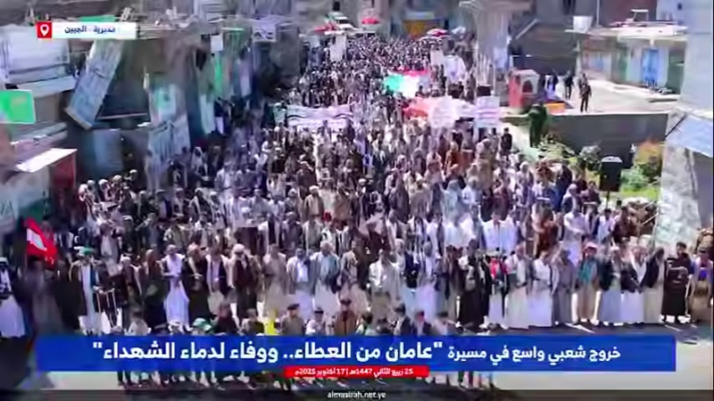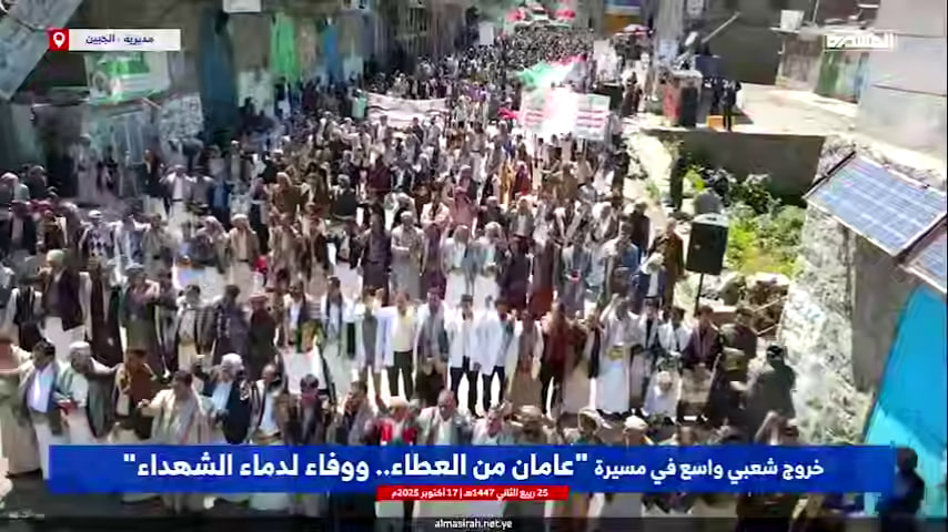 محافظة #ريمة - #الجبين | خروج شعبي واسع في مسيرة "عامان من العطاء.. ووفاء لدماء الشهداء"#وإن_عدتم_عدنا #شهداؤنا_عظماؤنا pic.twitter.com/xUqIWfr23x— شاهد المسيرة (@ShahidAlmasirah) October 17, 2025