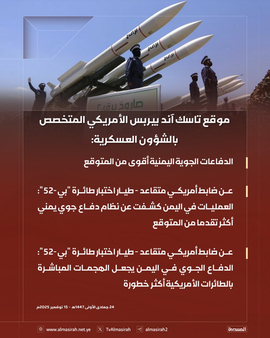 تاسك آند بيربس: الدفاعات الجوية اليمنية أقوى من توقعات البنتاغون