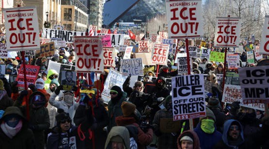 المسيرة نت| وكالات: إلى مزيدٍ من التصعيد، يتجه الشارع الأمريكي، وتحديدًا في ولاية "مينيسوتا"، وفي شوارع "مينيا بوليس"؛ إذ لم يكن الصقيع هو الصوت الأعلى، وإنّما هتافات الآلاف الذين خرجوا متحدين البرد، مطالبين بالعدالة، رافضين لسياسات إدارة ترامب ومنها ما يتعلق بالهجرة الفيدرالية.-