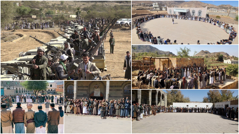 وأقيمت في مديريات محافظة مأرب عدة وقفات شعبية تحت الشعار ذاته، فيما عززت قبائل مأرب رسائل الردع والجهوزية والتحدي.