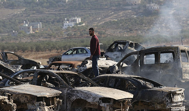 مغتصبون صهاينة يحرقون مركبات فلسطينية في رام الله