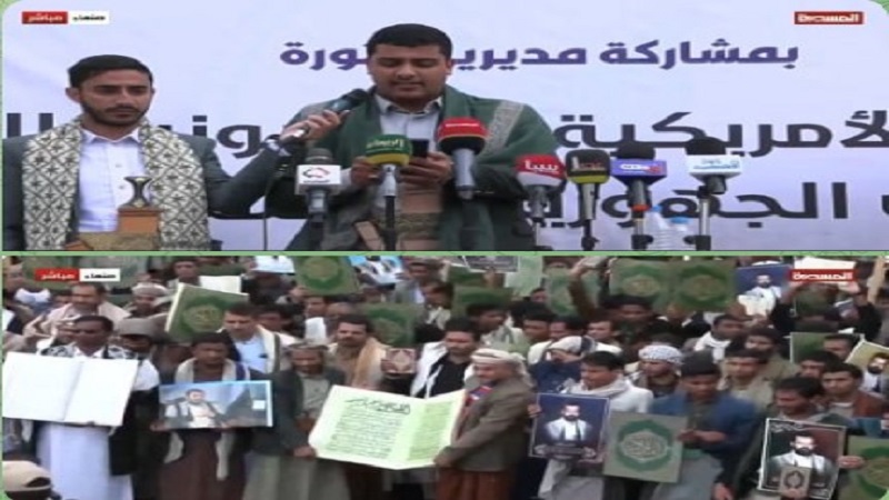 خامسًا: ندعو أبناء يمن الإيمان والحكمة والجهاد إلى الخروج المليوني المشرف في المظاهرة الكبرى يوم غدٍ الجمعة، استجابةً لدعوة السيد القائد عبد الملك بدر الدين الحوثي – يحفظه الله – في مواجهة الطغيان الأمريكي والإسرائيلي، ومساندة الشعب الفلسطيني المسلم والمظلوم، والتأكيد على الجهوزية العالية لمواجهة مخططات ومؤامرات الأعداء التي تستهدف بلدنا وكل المنطقة.