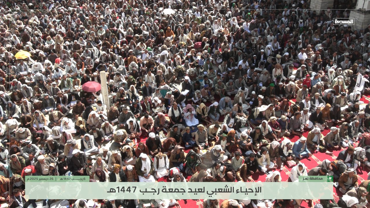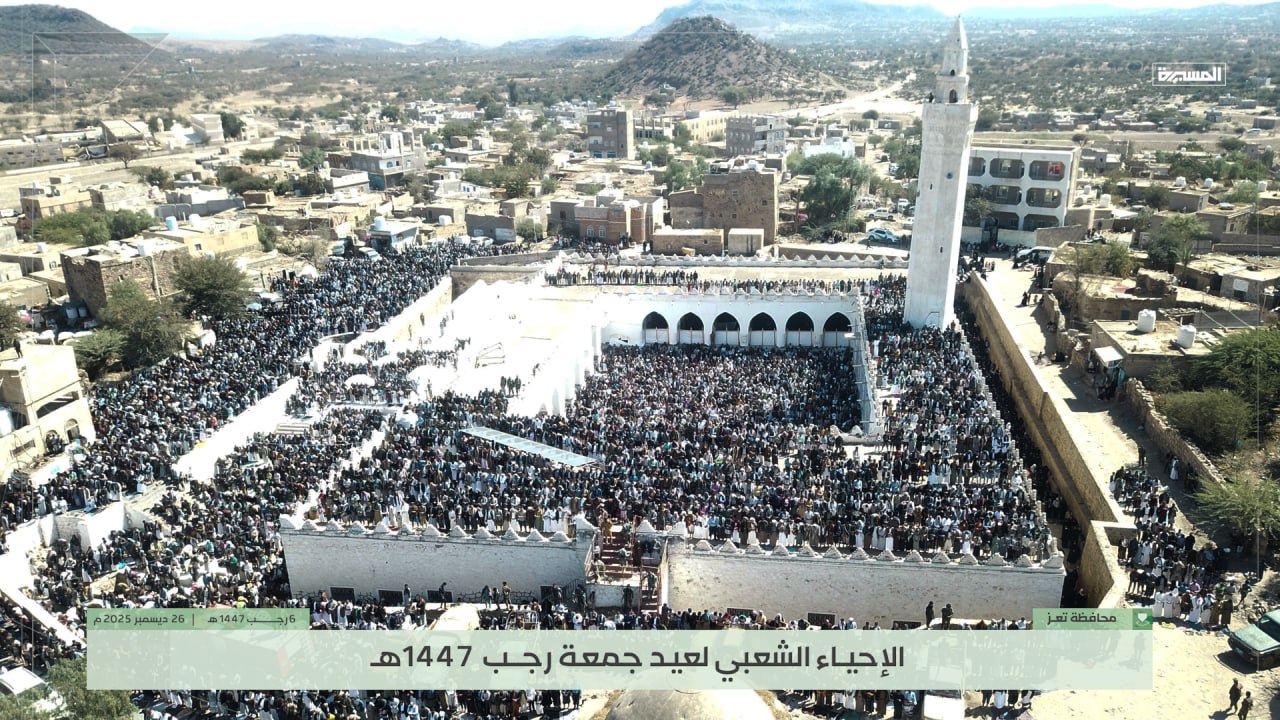شاهد | إحياء عيد جمعة رجب في #جامع_الجند بـ #تعز 06-07-1447هـ 26-12-2025م
