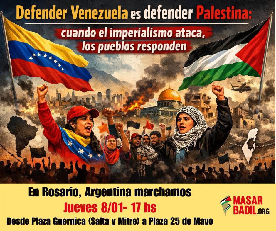 استمرارا للتحركات الشعبية الغاضبة في مختلف بلدان العالم ضد الهيمنة الأمريكية، شهدت مدينة روساريو الأرجنتينية مظاهرة واسعة شاركت فيه حركة المسار الفلسطيني الثوري البديل، إلى جانب منظمات نقابية واجتماعية وحقوقية وأحزاب سياسية، تنديداً بالتدخّل العسكري والاقتصادي الذي نفذته الولايات المتحدة بحق جمهورية فنزويلا.