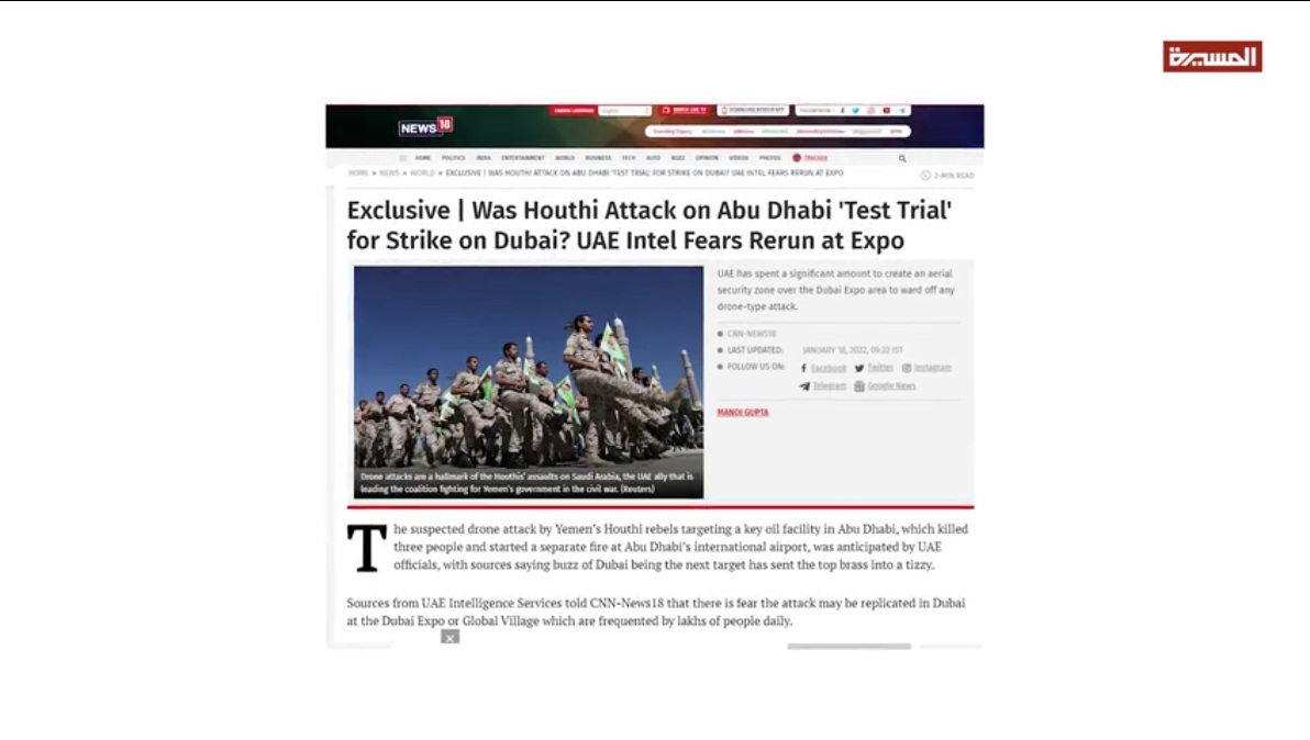 يومها، حاولت الإمارات التكتّم على العملية، في مشهد يعكس حجم الصدمة التي تلقتها المنظومات الأمنية والعسكرية، غير أن تصاعد أعمدة الدخان من خزانات النفط في منطقة المصفح، واندلاع الحرائق في منشآت حيوية، أجبرها على الاعتراف، حيث أقرت شركة أدنوك بتعرض منشآتها في مصفح آيكاد 3، إضافة إلى مواقع في منطقة الإنشاءات الجديدة بمطار أبوظبي، لهجوم مباشر باستخدام مسيّرات ومجنحات يمنية بعيدة المدى.