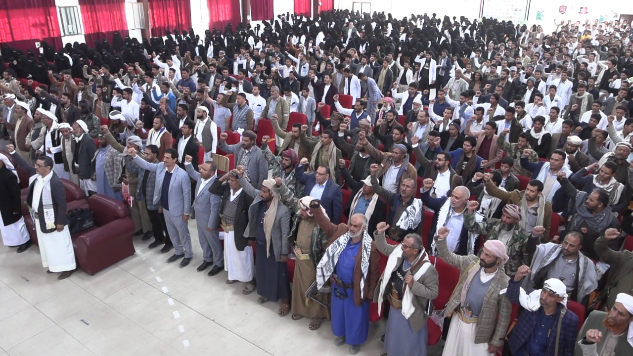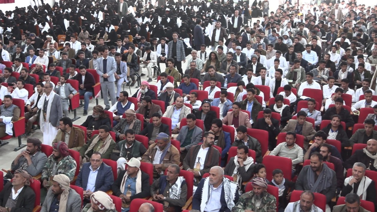 الفلسطيني، وزُينت القاعة بالأعلام اليمنية وشعارات تؤكد الموقف الثابت تجاه